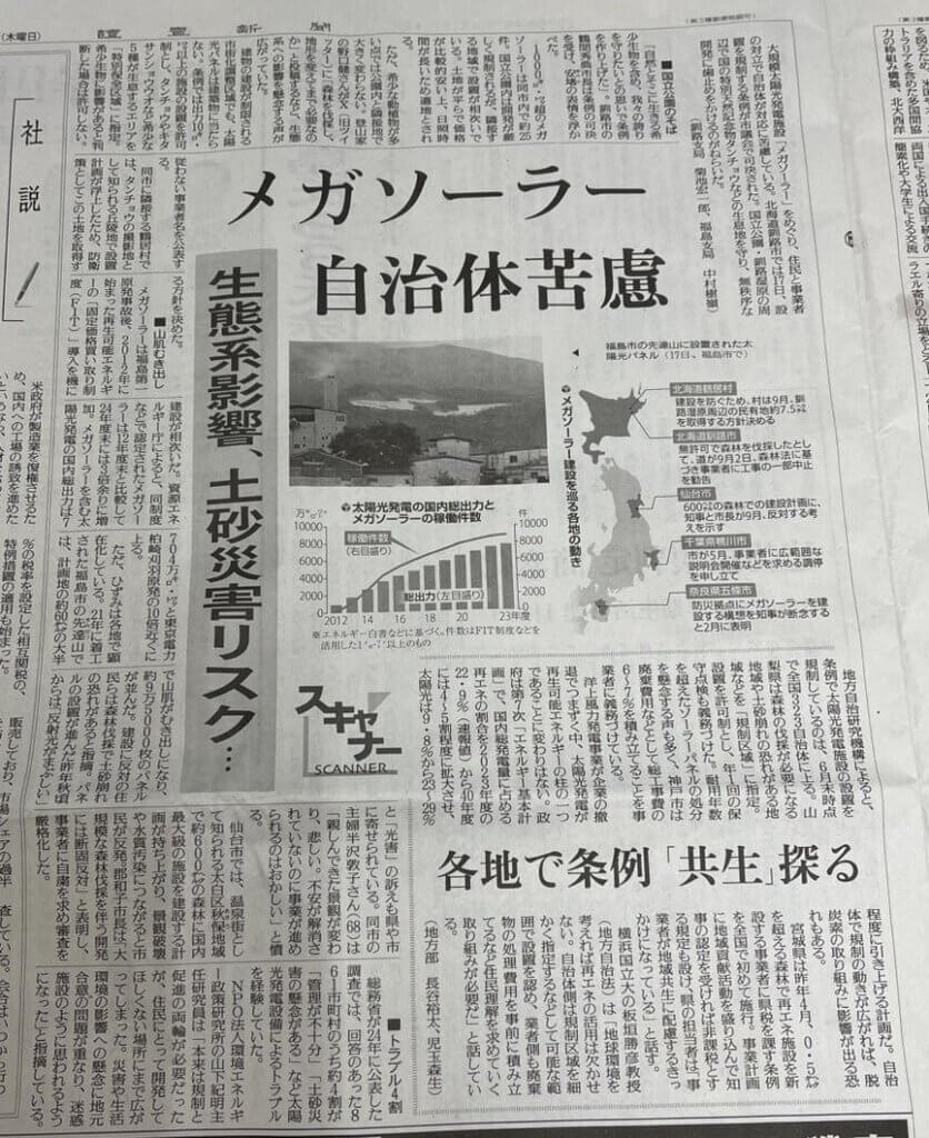 『読売新聞』2025年9月18日 メガソーラー 自治体苦慮