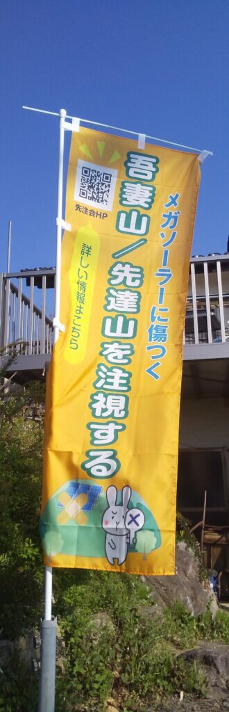 こうした経緯に照らすと、やはり、こうした本会ののぼり旗を狙う嫌がらせ行為も、先達山のメガソーラーで利益を上げる事業者側に近い人物・勢力の関与があるのではと疑う気持ちが起きるのは正直なところです。