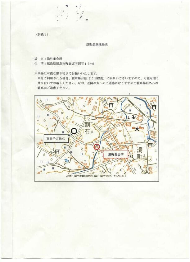 さて、3枚目を見ると、この事業説明会の場所は、施設近くの町内会の集会所となっています。