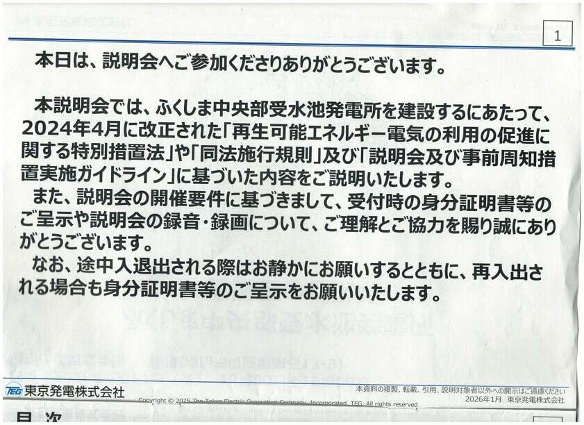 この身分証持参を求める理由は、回覧の二枚目の東京発電からの案内文に書かれています。