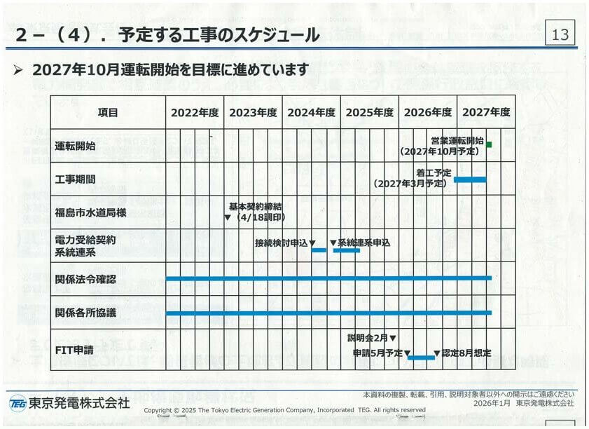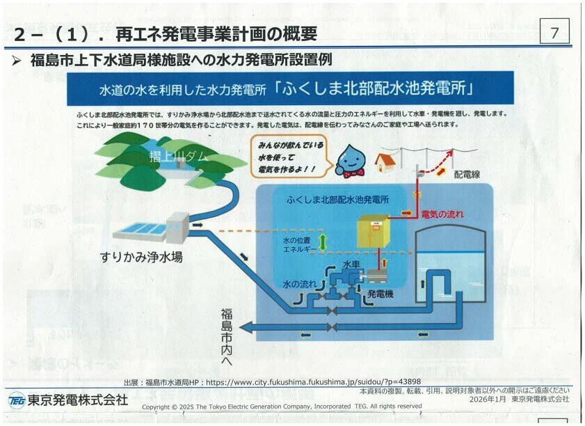 つまり、東電の子会社さんは、今からもう8年も前から、福島市のお墨付きで水道施設を使った売電事業を営んできたのです。