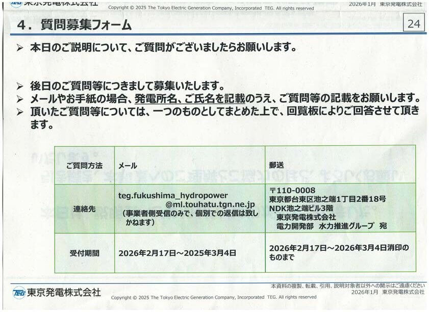 また今後、改めてこの小水力発電所計画の問題ついて続報したいです。また、本日の説明会の議事録も、開示請求して入手次第、公開したいです。