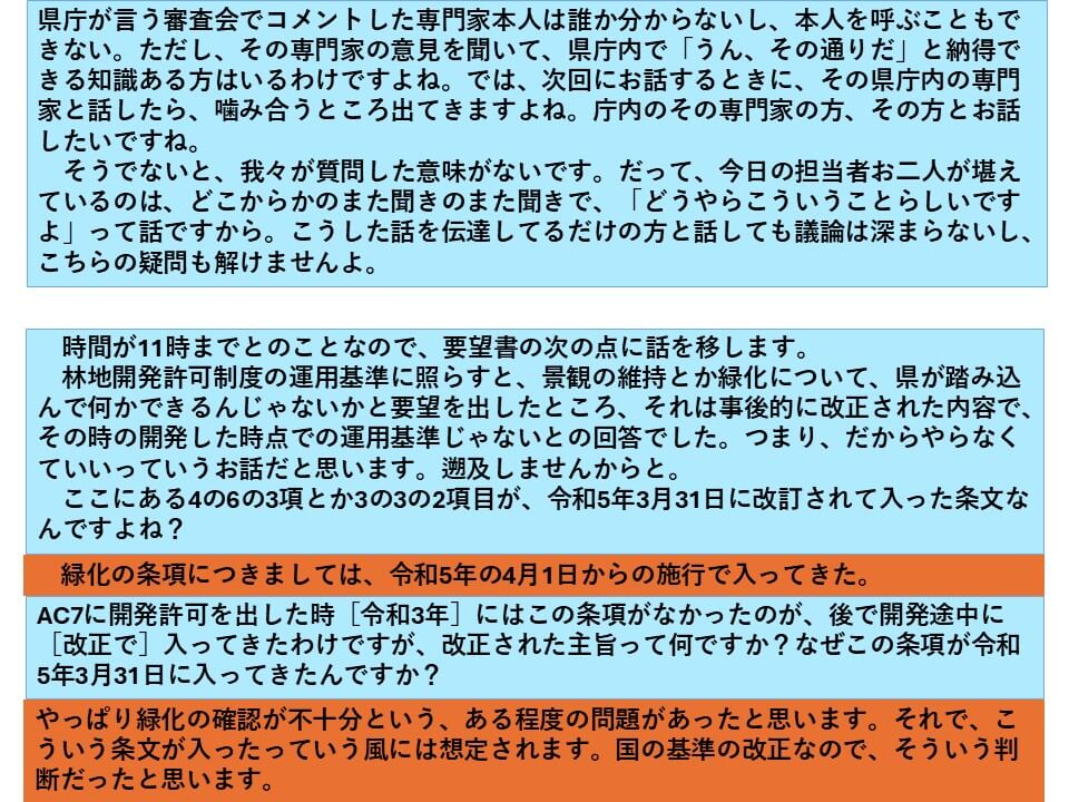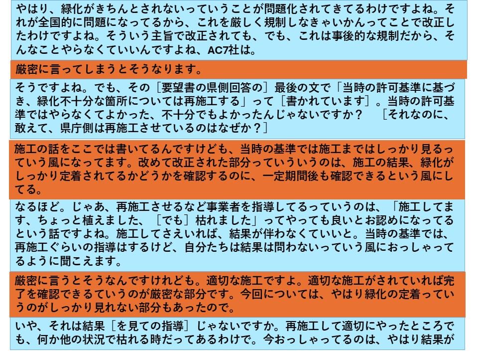 つまり、事後的な規制はできないから、AC7社には、緑化の指導はできない、というのです。