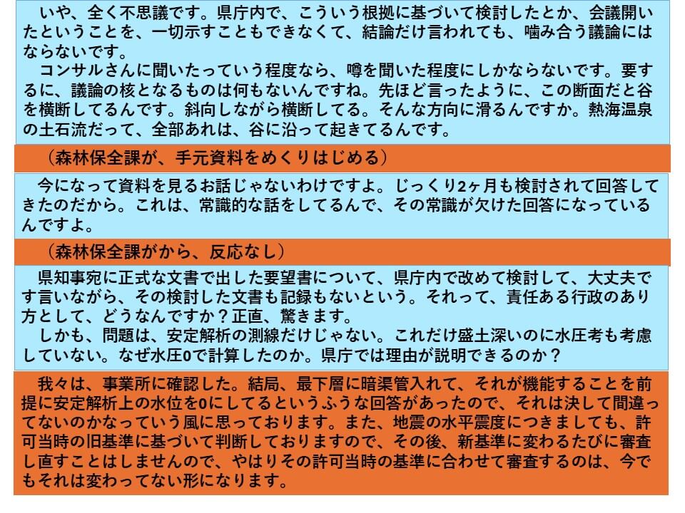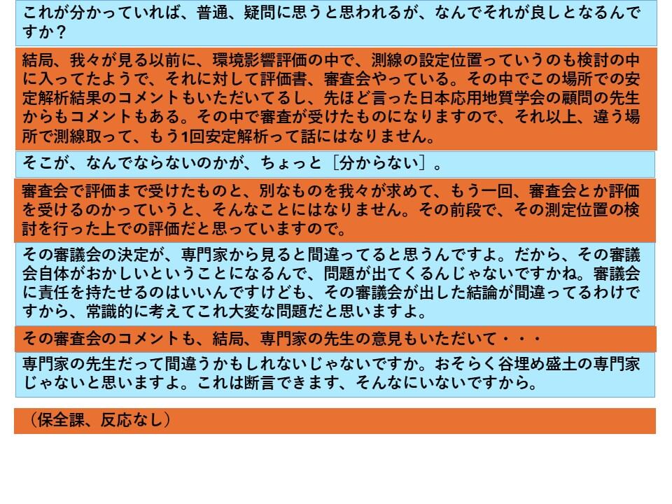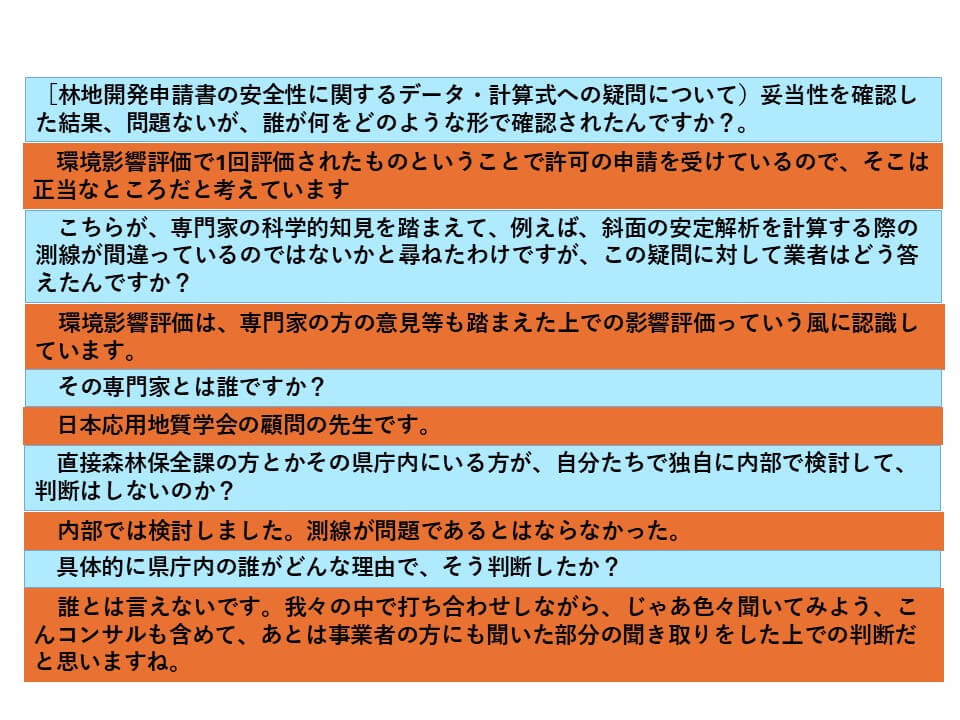 その結果、県側も事業者側も自ら疑問点について再調査や計算を行うこともなく、単に環境影響評価書の判断に間違いはないと信じ、それを盾に問題ないと言い張っているに過ぎないことが分かりました。