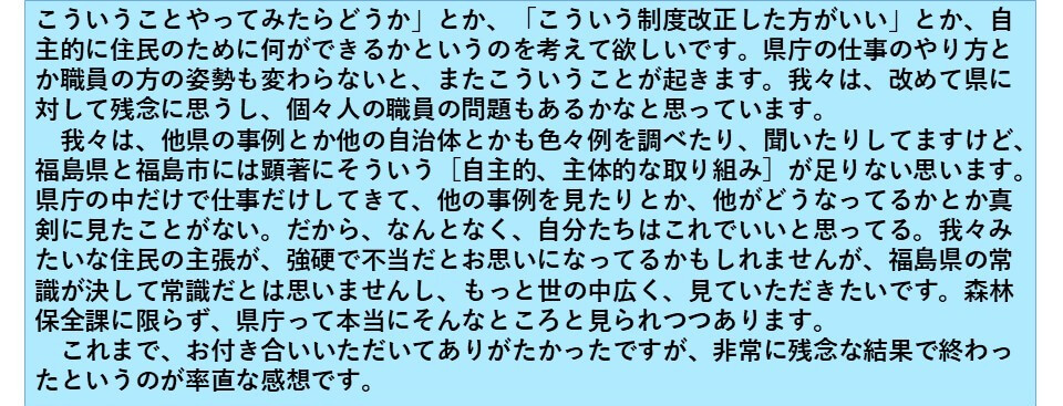 ここには、福島の森林を守りつつ、適切な開発を指導・監督していく役所としての自負や誇りのかけらも見当たりません。