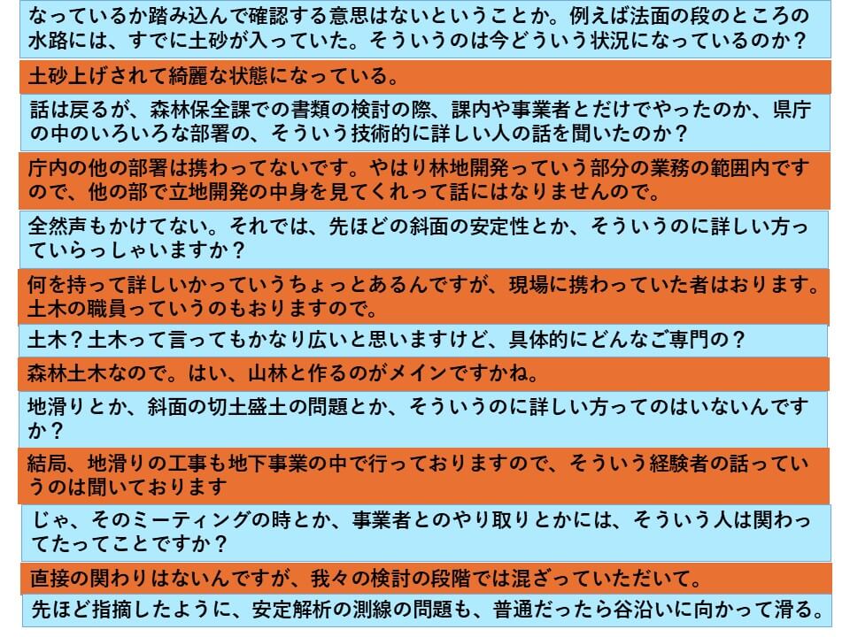 上をご覧になれば、保全課が本課からの質問事項を、事業者にほぼ丸投げして、回答を作ってもらったことが分かります。